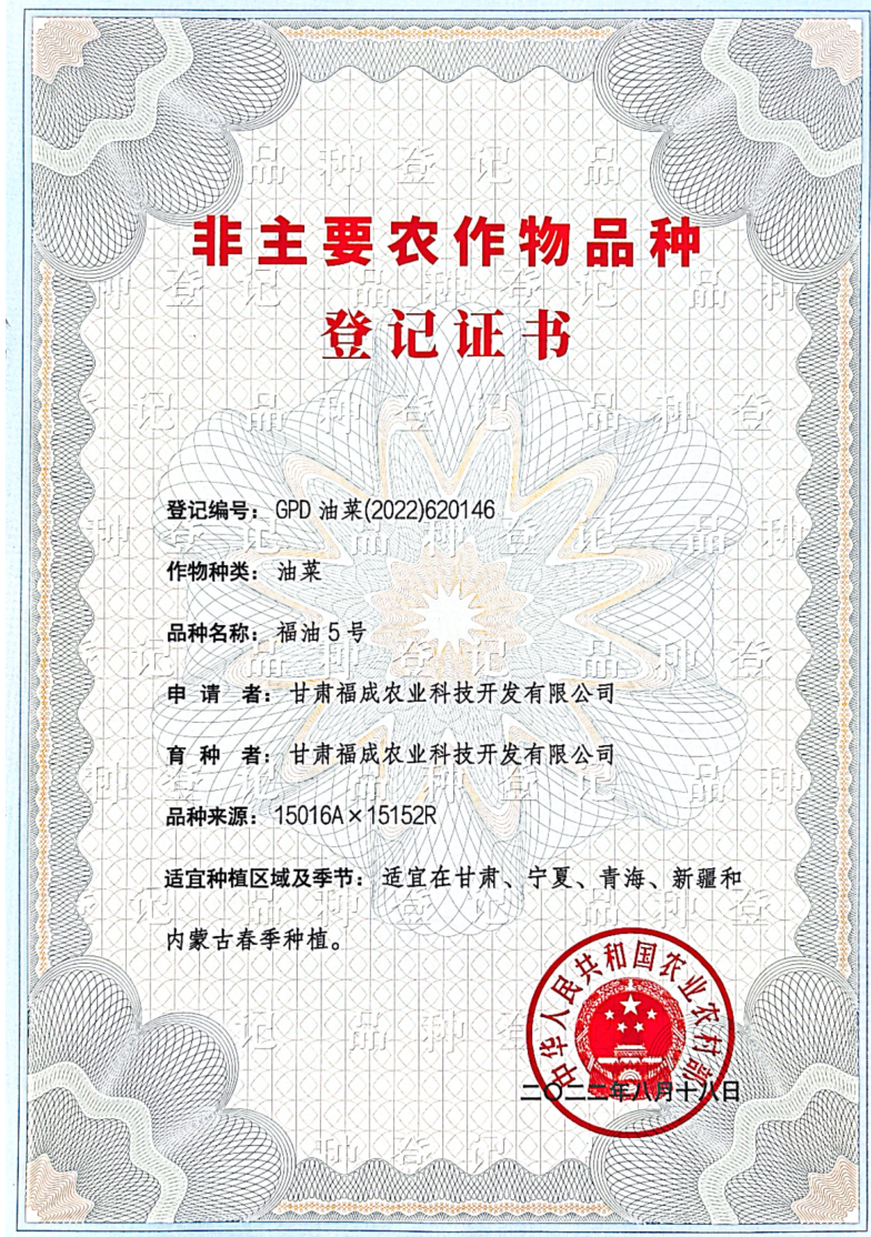 【甘肃福成农业】甘肃福成农业科技开发有限公司成立于2014年11月,主要从事蔬菜、杂交油菜、花卉、小麦种子的生产经营。公司成立以来专业从事培育新品种为发展基础,秉承科技创新、合作发展的理念,先后与四川长江种业,湖北谷城圣光种业,华中农业大学油莱研究所,甘肃省科农科院作物油菜研究所等多家种子企业和科研院所开展合作,并得到品种培育方面的技术支持和协作。公司从2016年到2021年间,合作代繁生产杂交油菜2.7万多亩、蔬菜700多亩,花卉400多亩,小麦8千多亩,在公司实行的订单制种种植生产,带动周边种植户和农户稳定增收和对订单农业种植积极性。联系电话:13993644368